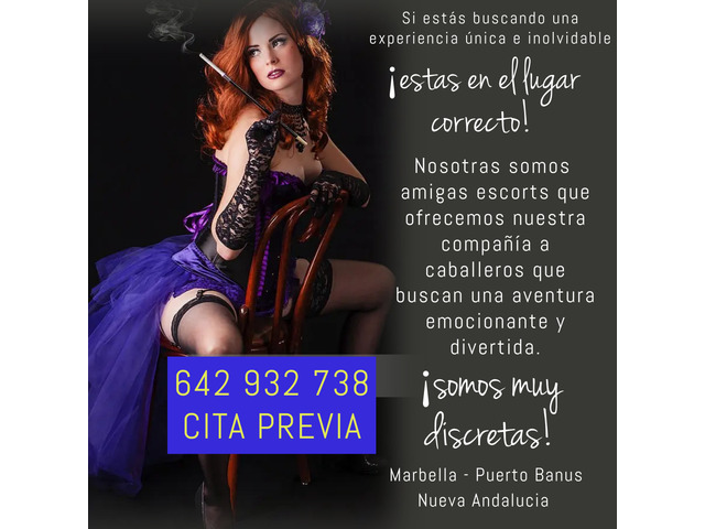 ¡hola! si estás buscando una experiencia única e inolvidable, estás en el lugar correcto. nosotras somos amigas escorts que ofrecemos nuestra compañía a caballeros que buscan una aventura emocionante y divertida. somos mujeres hermosas, atrs y elegantes que te garantizamos que pasarás momentos inolvidables en nuestra compañía. todas tenemos una personalidad encantadora y amigable, lo que nos permite conectar fácilmente con nuestros clientes y hacer que se sientan cómodos desde el primer momento. ofrecemos una amplia gama de que se adaptan a tus necesidades y deseos. desde una cena romántica hasta una noche de , podemos ser tu compañía perfecta en cualquier situación. también podemos proporcionar masajes relajantes y , si lo deseas. nos enorgullece ofrecer un discreto y profesional, y siempre nos aseguramos de que nuestros clientes se sientan seguros y cómodos en nuestra compañía. además, respetamos tu privacidad y confidencialidad en todo momento. si estás buscando una experiencia única y emocionante con mujeres hermosas y atrs, no dudes en contactarnos. estamos seguras de que disfrutarás de nuestra compañía tanto como nosotros disfrutaremos de la tuya. esperamos tu contacto pronto y hacer realidad todas tus . cancelada, benahavis, san pedro de alcántara, nueva andalucia, puerto banus, aloha, marbella, guadalmina, ojen, cabopino, calahonda, los naranjos, centro plaza, milla de oro, las chapas, rio real